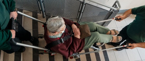 A stair climber enables people who live in flats above the ground floor and are housebound, to get out of their home and then transported to their destination.